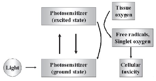 광감작제는 특정 파장의 빛에 의해 여기 상태로 변화하는 물질로 가시광선에서 근적외선에 이르는 파장 대역의 빛을 흡수하고 triplet state로 에너지 수준이 여기됩니다.